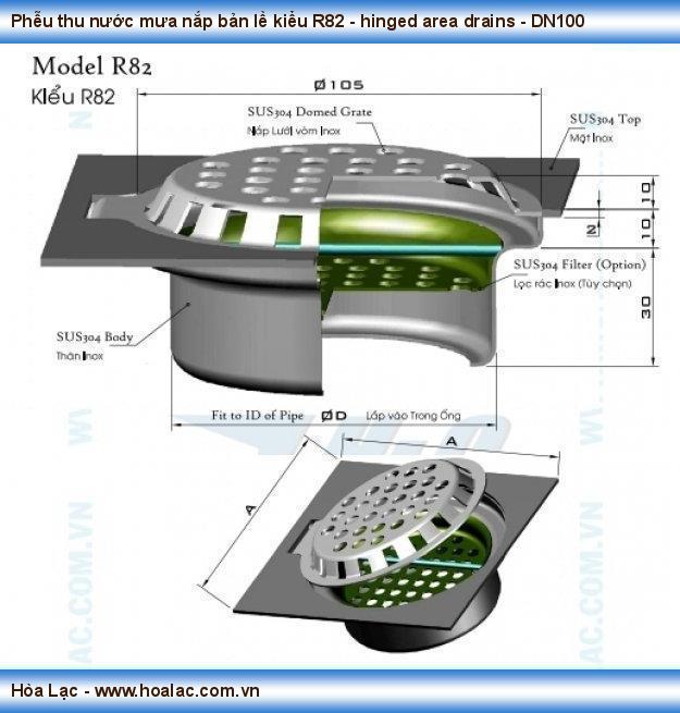pheu thu nuoc dung✅Phễu thu nước mưa nắp bản lề inox 304 kiểu R82 - hinged area drainsDN100 - ngăn rác