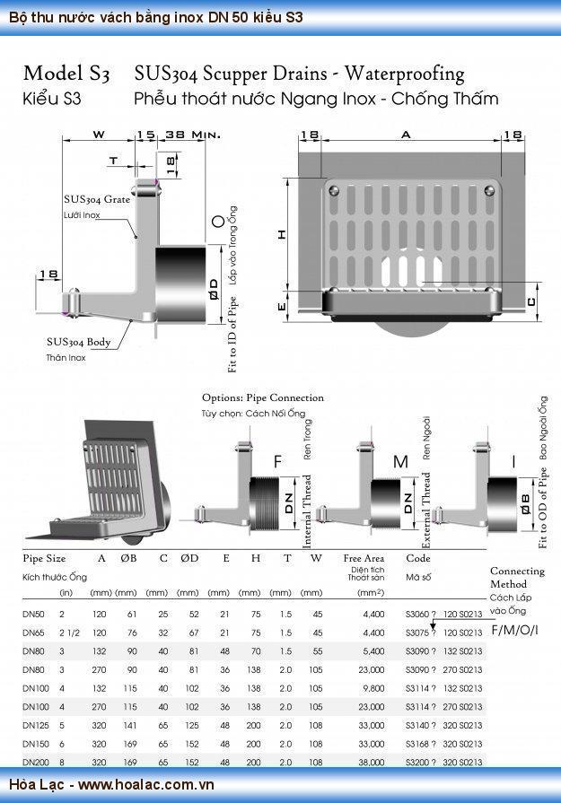 Bộ thu nước vách bằng gang và inox 304 kiểu S1 DN65, tiện ren